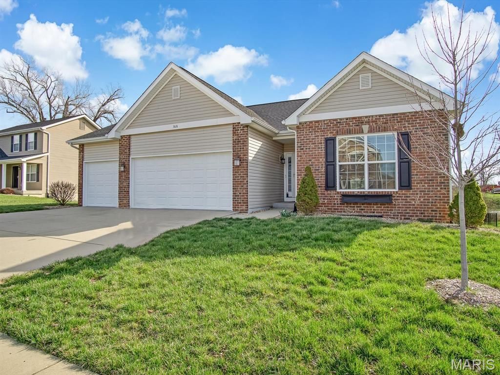 Move-in Ready 3 bedrooms, 2 full baths ranch home with desirable divided bedroom design. The light-filled open floor plan features a spacious living room with engineered wood flooring, and a beautifully appointed kitchen with staggered custom cabinetry, granite countertops, stainless steel appliances, center island and walk-in pantry. The main floor laundry adds great convenience. The primary suite includes a walk-in shower, dual sink vanity, and large walk-in closet. The large finished basement offers recreation area, a bathroom rough-in, and storage. Enjoy outdoor living on the composite deck off the dining area or the lower concrete patio, perfect for grilling and entertaining. You'll love the 3-car garage with insulated doors. Convenient location near shopping, public transportation, Wolf Branch schools, and Scott Air Force Base. This home is move-in ready and available now?